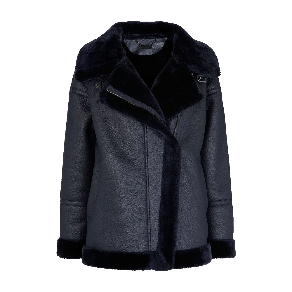 - Collar: Lapel Style Shearling Collar Along With Belted